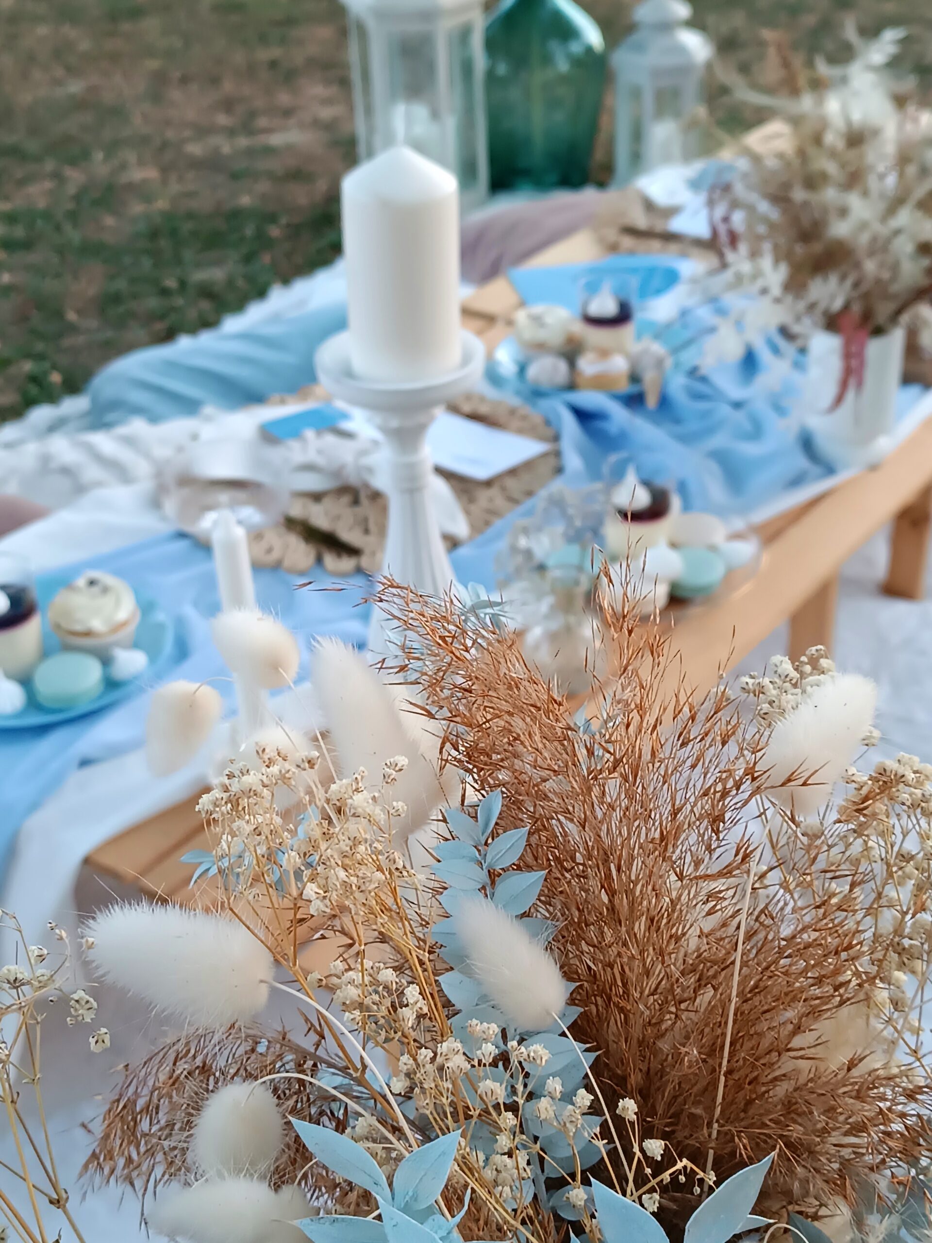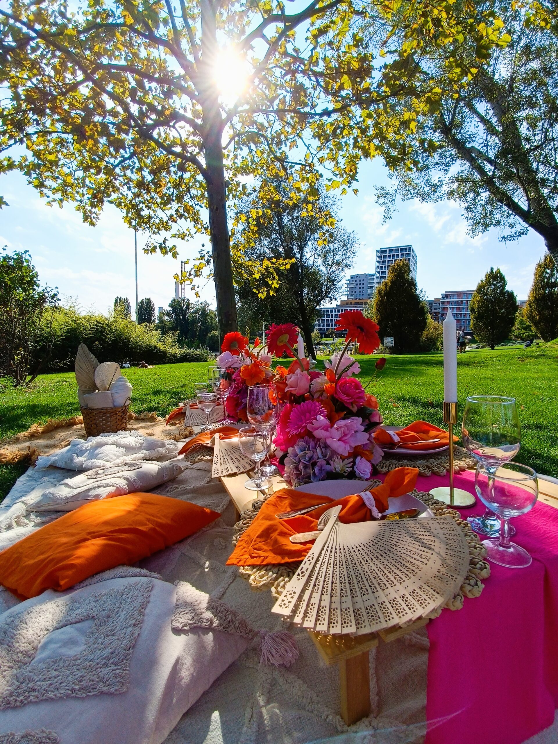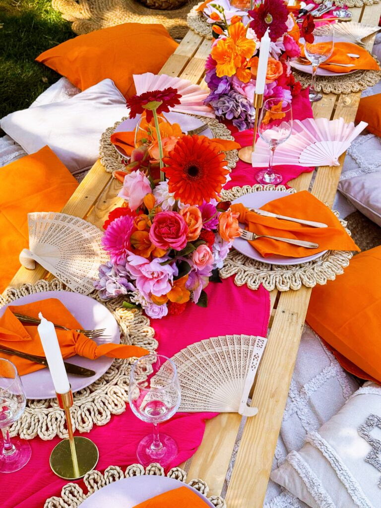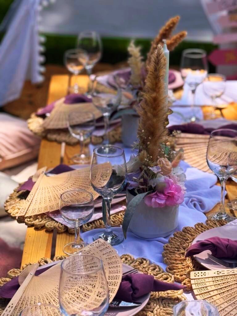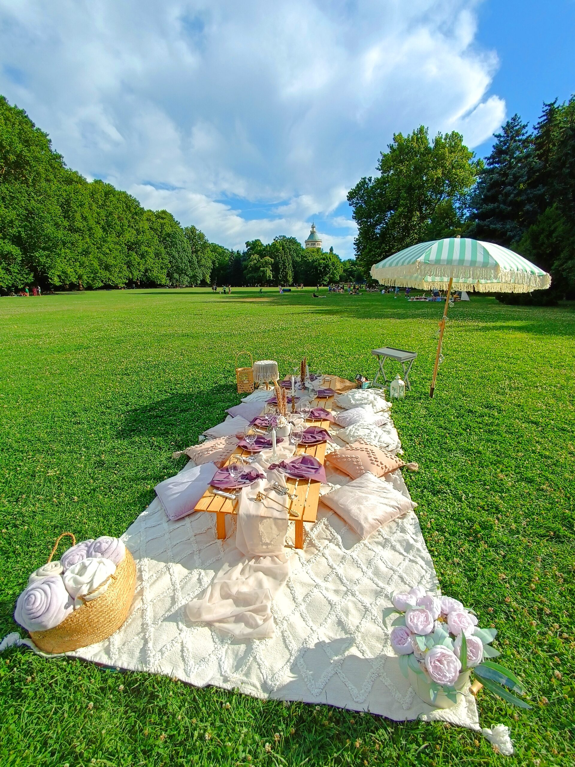 – piknikasztal terítékkel